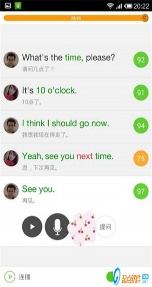提供口語英語練習(xí),通過語音跟讀提高口語水平可以進(jìn)行發(fā)音測評,根據(jù)您的發(fā)音準(zhǔn)確評分
