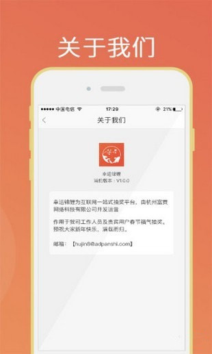 幸運錦鯉是一款抽獎app,既為公司流量推廣,又為回饋公司員工和貴賓用戶,專門設置十多個抽獎獎品。