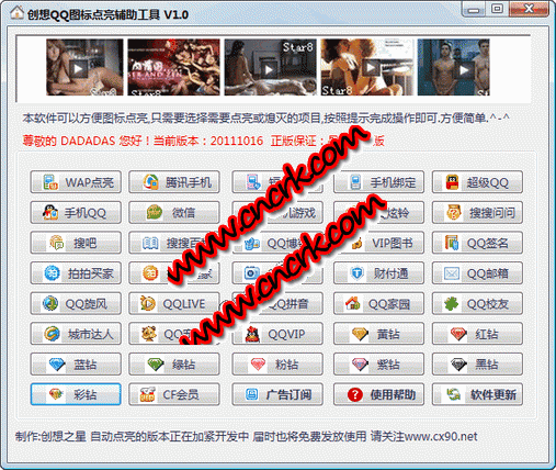 qq圖標(biāo)點(diǎn)亮軟件,它可以幫助您快速點(diǎn)亮騰訊qq點(diǎn)燈,簡(jiǎn)單易用,綠色無(wú)毒無(wú)插件。目前支持37個(gè)圖標(biāo)點(diǎn)亮,未來(lái)還將升級(jí)更多。使用它,讓您點(diǎn)燈更簡(jiǎn)便,更快捷。普通版永久免費(fèi),每個(gè)月更新2-4次,未來(lái)還將增加一鍵點(diǎn)亮等功能。感謝大家支持,同時(shí)歡迎介紹給您的朋友一起分享!