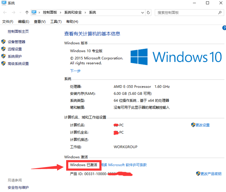 3、在彈出的窗口中查看windows的激活狀態(tài)。激活過(guò)后的會(huì)顯示已激活(如下圖紅色框框部分)