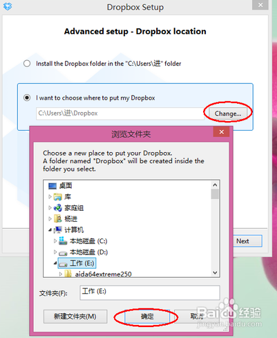 我選擇把要同步的文件夾放在我的“E:盤”,然后點(diǎn)擊“確定”,如下圖所示
