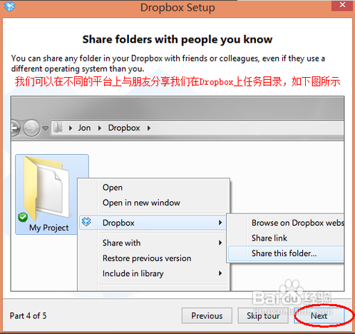 如果我們想要在別人的電腦訪問我們?cè)?Dropbox 云端的文件時(shí),只需要打開 “www.dropbox.com”,登錄即可訪問了。點(diǎn)擊“Next”,繼續(xù),如下圖所示