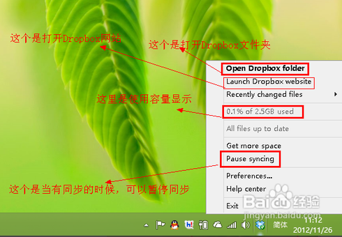 接下來我們隨便拖動(dòng)二個(gè)文件到 Dropbox 中,看看系統(tǒng)右下角任務(wù)欄中的 Dropbox 通知圖標(biāo)會(huì)有什么變化,如下圖所示