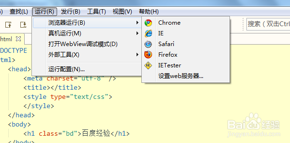 代碼的運(yùn)行有兩種方式,以下圖為例,點(diǎn)擊對(duì)應(yīng)的瀏覽器之后回跳轉(zhuǎn)到一個(gè)對(duì)應(yīng)的頁面。