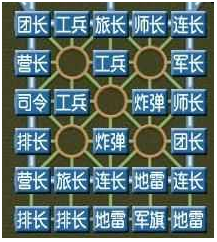 5.炸彈不能放在第一行,地雷只能放在最后兩行,軍旗只能放在大本營。