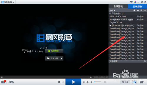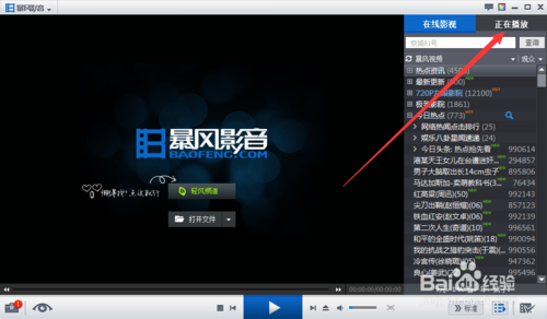 1、首先,我們打開暴風(fēng)影音主頁(yè)面,我們選擇正在播放將播放列表切換到正在播放列表