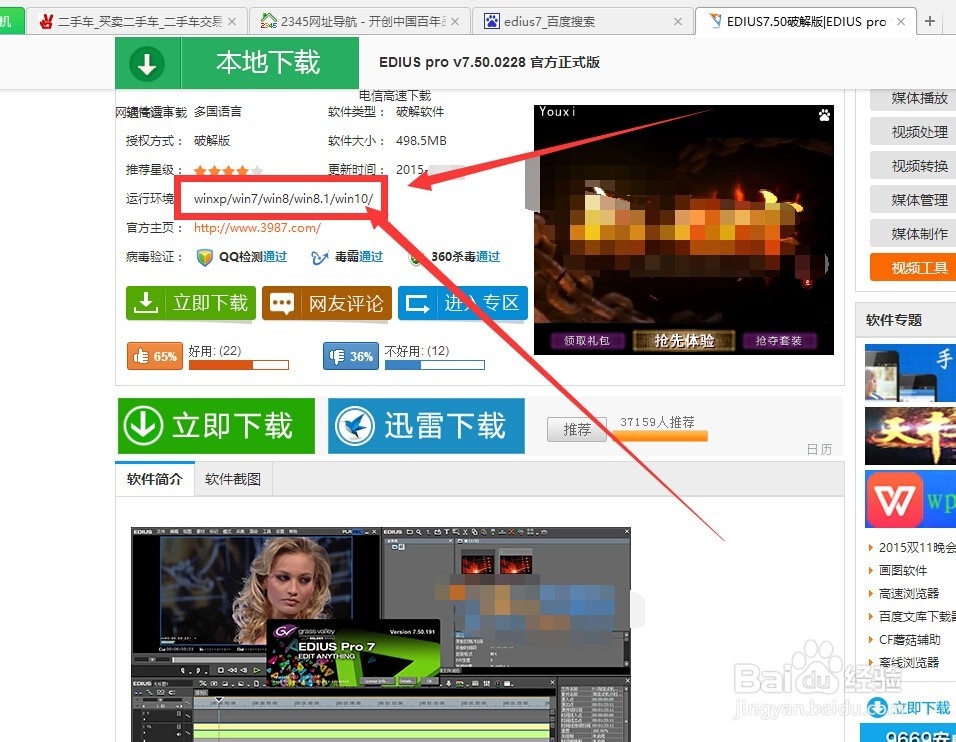 去網(wǎng)上下載EDIUS的最新版本,要求必須是支持win10系統(tǒng)的。