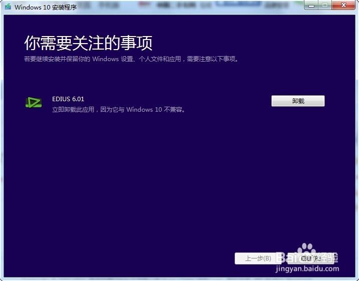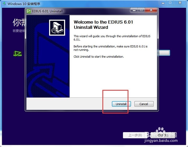 為了不影響win10的安裝,我們首先要點擊“卸載”卸載掉EDIUS。