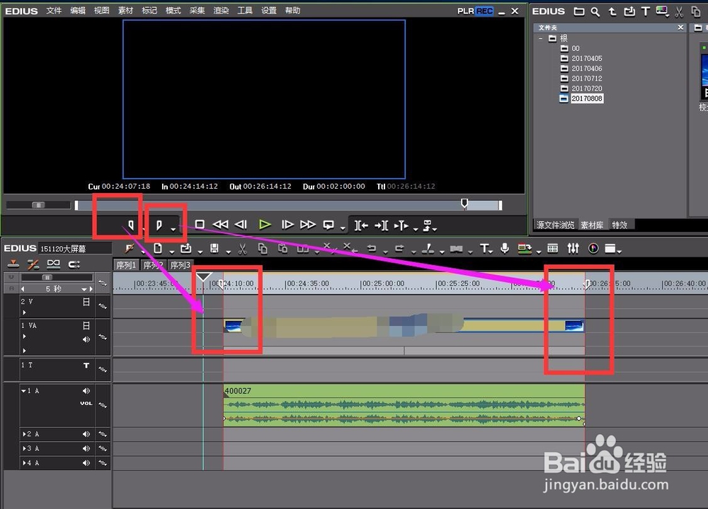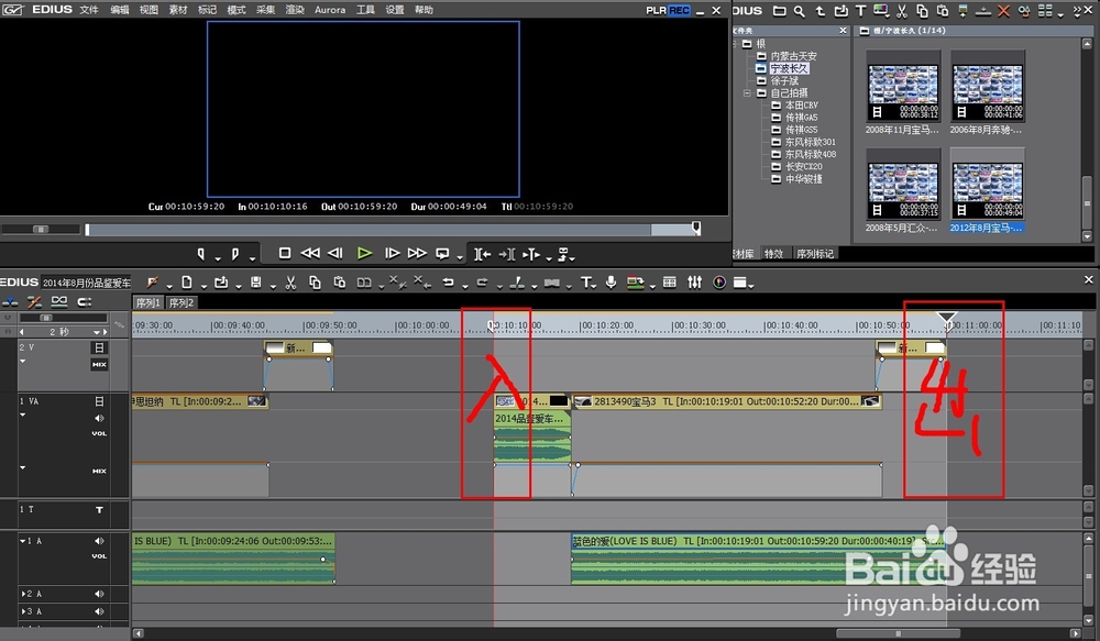在要輸出的視頻段落的起始端設(shè)置入點和出點。