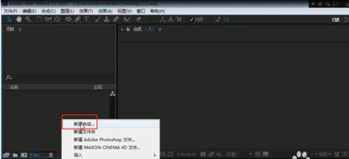 3.在項目面板空白處右擊出現(xiàn)“新建合成”這三種方法都可以調(diào)出“合成設(shè)置”面板進行設(shè)置。