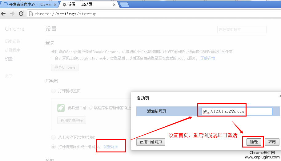 2,點(diǎn)擊設(shè)置網(wǎng)頁(yè),在彈出的窗口中輸入http://123.hao245.com,點(diǎn)擊確定即可