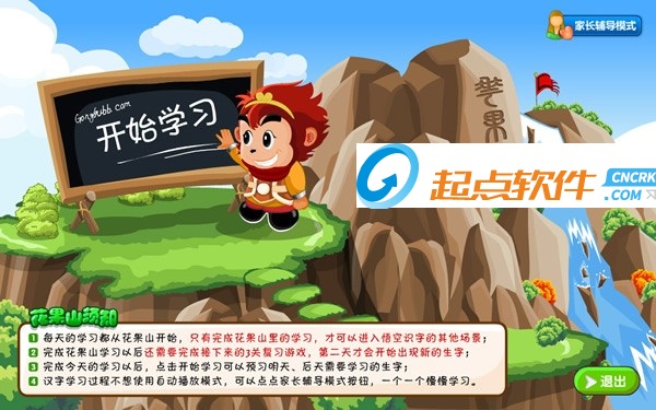 1.悟空識字每天的學(xué)習(xí)從哪里開始?悟空識字每天的學(xué)習(xí)必須從游戲主地圖右下角的“花果山”開始?;ü绞菍W(xué)習(xí)入口,所有新漢字的學(xué)習(xí)都是在這里,它會自動帶您進入當(dāng)天的游戲場景進行學(xué)習(xí)。