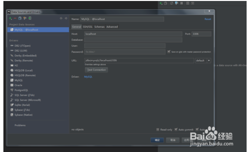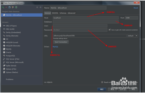 4.連接mysql數(shù)據(jù)庫,填寫數(shù)據(jù)庫地址和用戶名,密碼