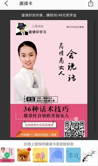 4、用課程鏈接進(jìn)行分享很容易覆蓋邀請(qǐng)關(guān)系,建議分享者生成邀請(qǐng)卡進(jìn)行分享。