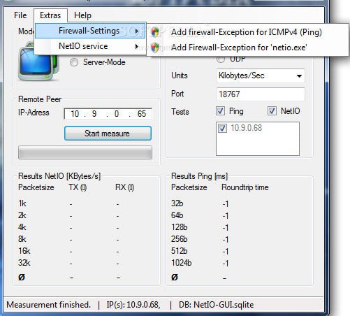 NetIO-GUI是一款網(wǎng)絡(luò)卡頓診斷工具,使你能夠測(cè)量ICMP響應(yīng)時(shí)間和網(wǎng)絡(luò)傳輸速率和結(jié)果保存到一個(gè)文件,它為用戶提供一個(gè)簡(jiǎn)單的測(cè)量?jī)蓚€(gè)節(jié)點(diǎn)間的網(wǎng)絡(luò)速度,ICMP回應(yīng)措施的時(shí)間和不同的數(shù)據(jù)包大小和協(xié)議的網(wǎng)絡(luò)傳輸速率,所有的結(jié)果都存儲(chǔ)在一個(gè)SQLite數(shù)據(jù)庫文件,可以很容易地比較。