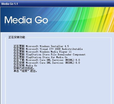 等待補(bǔ)丁軟件全部安裝完成,點(diǎn)擊"結(jié)束"完成Media Go安裝。