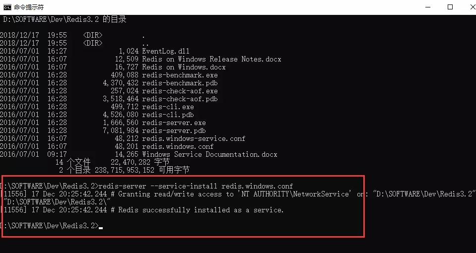 redis-server --service-install redis.windows.conf