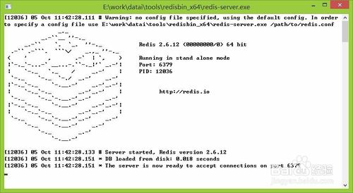首先啟動redis服務,這里為了演示,使用的redis的Windows版本,安裝在本地來測試的。平常項目開發(fā)中,使用的redis都是在遠程服務器上的。但連接和使用方式基本一樣。進入redis目錄,雙擊redis-server.exe啟動redis服務,出現(xiàn)如果的頁面,表示啟動成功