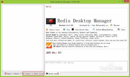 打開RedisDesktopManager客戶端軟件,首次打開,連接列表都是空白的,可以點擊最下方的"Connect to Redis Server"添加新的redis連接