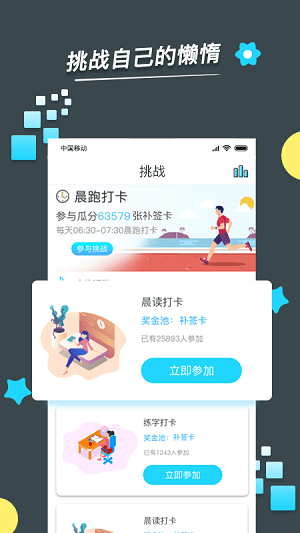 我們這款打卡的APP可能會是答案。在這里,你們可以盡情挑戰(zhàn)自己定下并達成目標,或者圍觀他人目標。