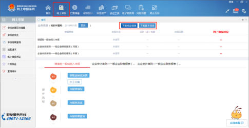 點(diǎn)擊“網(wǎng)上申報(bào)按鈕”,點(diǎn)擊“下載基本信息”和“下載核定信息”,以下載稅務(wù)登記信息、稅費(fèi)種核定信息、備案資格、期初數(shù)據(jù)等: