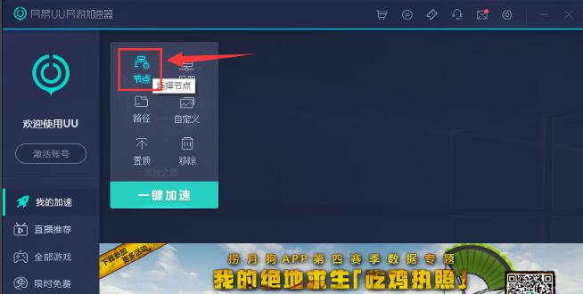 4、在游戲加速的列表中就會有吃雞一鍵加速的按鈕,點擊