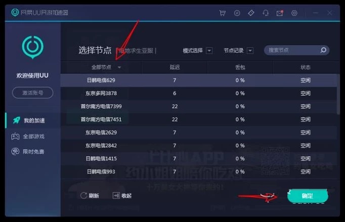 8、根據(jù)需求選擇加速的節(jié)點即可加速游戲。