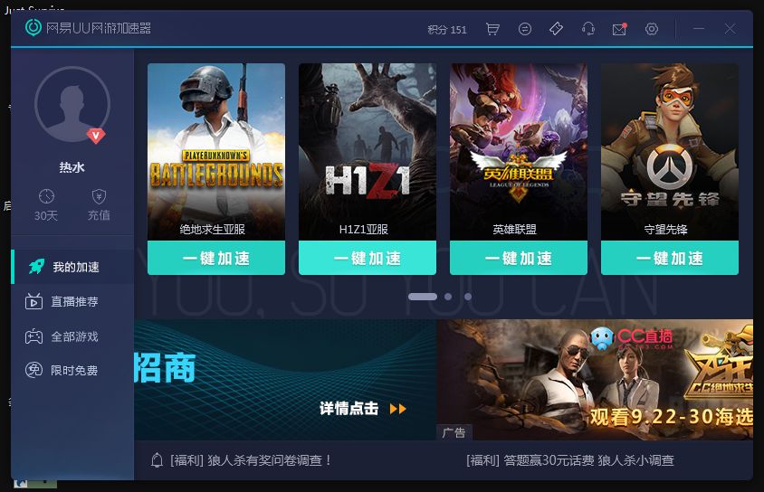 小編推薦網(wǎng)易UU網(wǎng)游加速器,開發(fā)公司是網(wǎng)易公司,該產(chǎn)品免費。該產(chǎn)品免安裝只需下載網(wǎng)易UU應用程序,直接雙擊即可使用。該軟件已經(jīng)覆蓋大多數(shù)游戲。