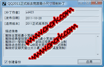 QQ2011正式版去主面板寬度尺寸限制補(bǔ)丁主要功能如下: