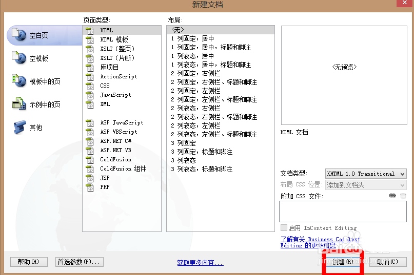 1、首先打開dw軟件,新建一個空白頁