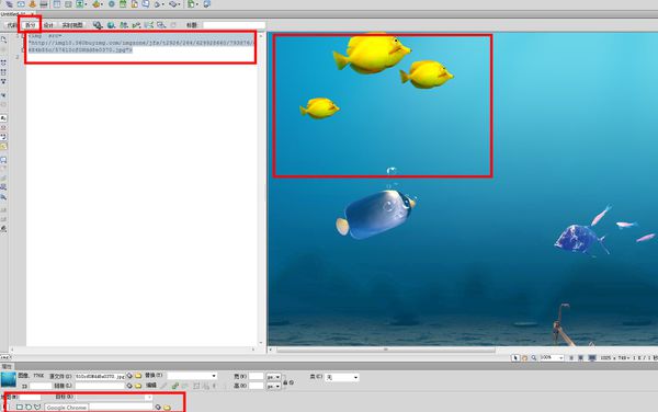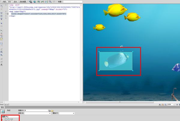 第二步,要什么形狀選什么工具框出你要加熱點的區(qū)域,我用了方形熱點是那條藍(lán)色的小魚;(注意,此時鏈接那兒是個“#”符號)