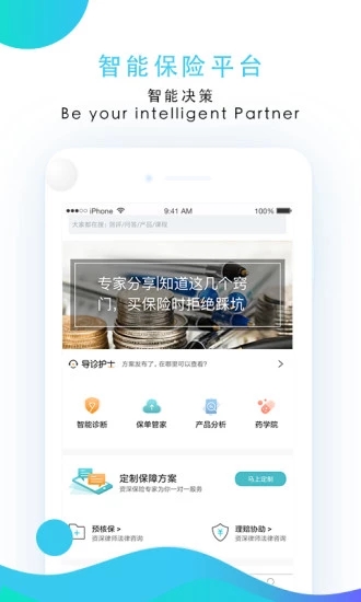 1、人工智能診斷:測風(fēng)險?挑產(chǎn)品?怕忽悠?人工智能幫你預(yù)測風(fēng)險、匹配產(chǎn)品,給你客觀公正的風(fēng)險管理和保險配置。2、定制保障方案:單身貴族?有娃族?銀發(fā)族?保險專家一對一服務(wù),針對每個人需求差異定制量體裁衣的全方位保障方案。