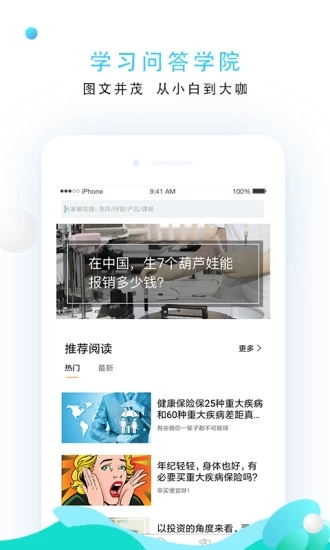5、學(xué)習(xí)問答學(xué)院:看不懂?怕被坑?大咖來教你!從保險基礎(chǔ)知識到產(chǎn)品具體解讀,幫你從保險小白到專家。