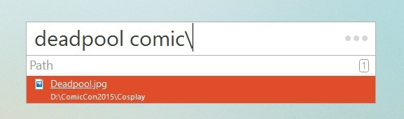 例如,假設(shè)您在D:驅(qū)動器上有一個名為Deadpool.jpg的圖像,名為ComicCon2015。使用Pro的高級搜索,您可以使用“deadpool”開始搜索。如果你沒有得到你想要的結(jié)果,或者返回太多,只需添加“comiccon”即可快速縮小范圍!