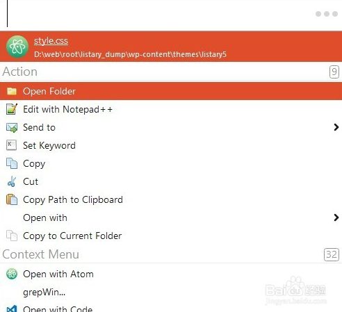 Listary附帶了大量的上下文菜單操作,其中許多都是為Pro用戶保留的。使用Listary啟動搜索查詢,只需按右鍵(或Ctrl + O)即可訪問完整的上下文菜單列表。