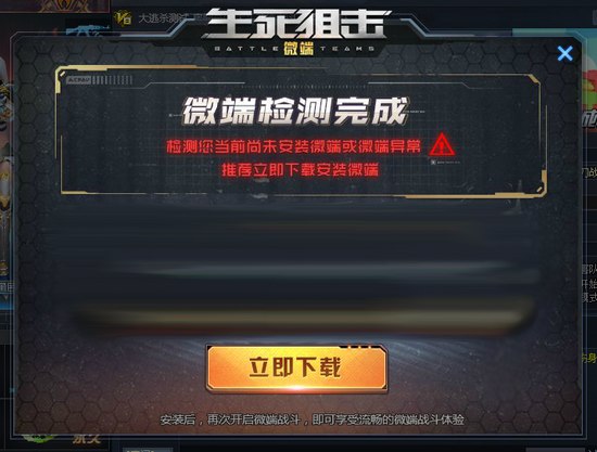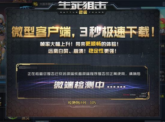 檢測倒計(jì)時10秒,檢測完成后,如果您從未安裝過《生死狙擊》微端,將會返回您尚未安裝微端并彈出安裝引導(dǎo)界面: