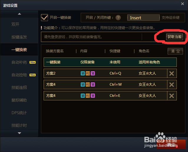 打開TGP進(jìn)入游戲中的一鍵換裝,選擇其中的獲取當(dāng)前選項(xiàng)