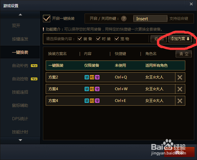 獲取選項(xiàng)之后添加方案并且設(shè)置快捷鍵就可以用了