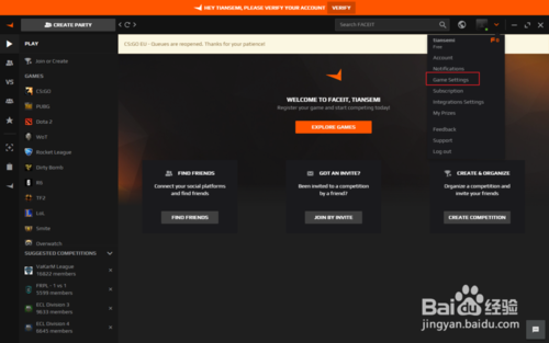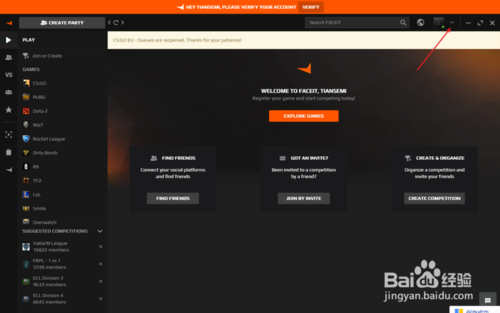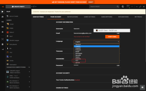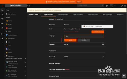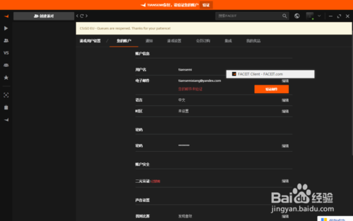 在FACEIT官網(wǎng)注冊賬號并下載客戶端,這個過程可能需要加速器