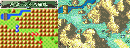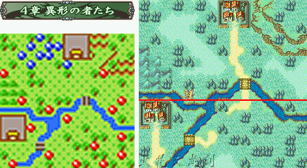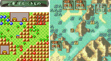本章給人的第一感覺(jué)就是敵人的數(shù)量比以前多多了……不過(guò)主要的敵人僵尸ゾンビ能力都是0和1之類(lèi)的,而且也無(wú)需注意武器相克,所以盡情發(fā)揮吧!新加入的修道士アスレイ(阿斯雷)使用光屬性魔法,正好可以克制敵人眼球怪ビグル的攻擊。先去訪問(wèn)右方的村子得到鐵斧,然后全軍向下移動(dòng),擊倒古木后就可以利用這個(gè)當(dāng)橋直接到達(dá)下面的村子,訪問(wèn)后魔道士ルーテ(露忒)加入。敵人一共會(huì)出現(xiàn)兩次增援,第一次是第一回合敵人行動(dòng)結(jié)束時(shí),在右方出現(xiàn)3個(gè)骷髏兵スケルトン;第二次是當(dāng)我方任意一個(gè)成員,到達(dá)下方古木搭成的橋的位置時(shí),便會(huì)于本回合敵方行動(dòng)結(jié)束后,在左上出現(xiàn)4個(gè)僵尸增援,和回合數(shù)無(wú)關(guān),大家可以自己安排他們出現(xiàn)的時(shí)機(jī)~BOSS木乃伊マミー的HP和攻很高,不過(guò)其他能力就一塌糊涂了……總之,這章敵人多而不精,而且沒(méi)有山賊破壞村子,很輕松便可以過(guò)去^^