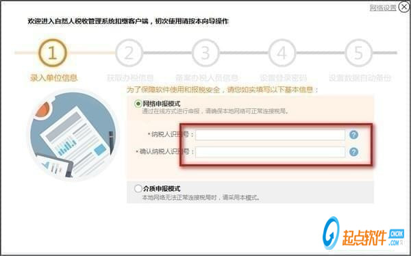 軟件安裝完成后,點(diǎn)擊界面上的【立即體驗(yàn)】按鈕(或點(diǎn)擊桌面“自然人稅收管理系統(tǒng)扣繳客戶端”快捷方式),即進(jìn)入注冊(cè)流程。注冊(cè)一共分為五個(gè)步驟。