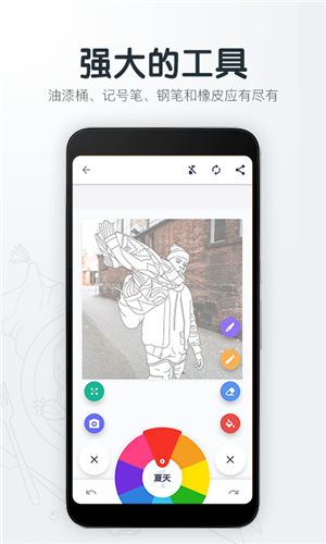3、25+多彩調(diào)色板:多種顏色隨意搭配,給圖片填上繽紛色彩。