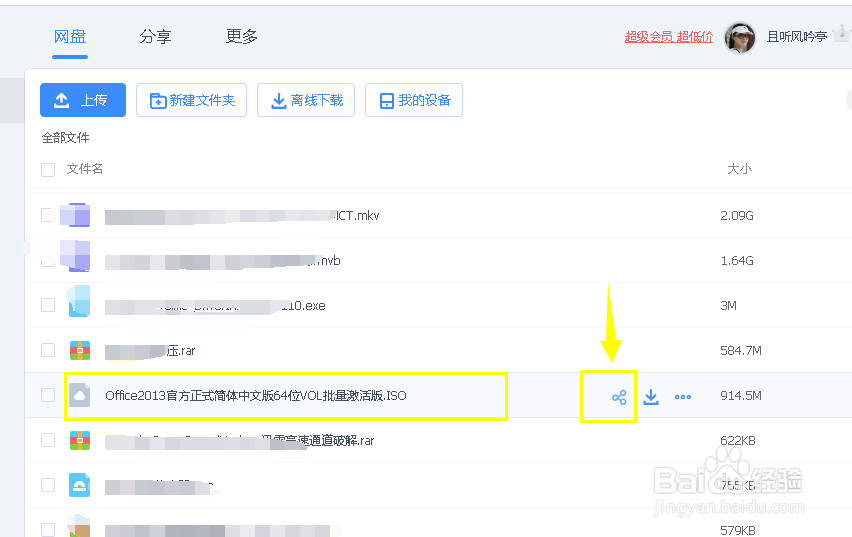 迅雷9vip破解版怎么下載百度網(wǎng)盤里的資源?首先選擇一個(gè)文件,點(diǎn)擊分享,如下圖所示