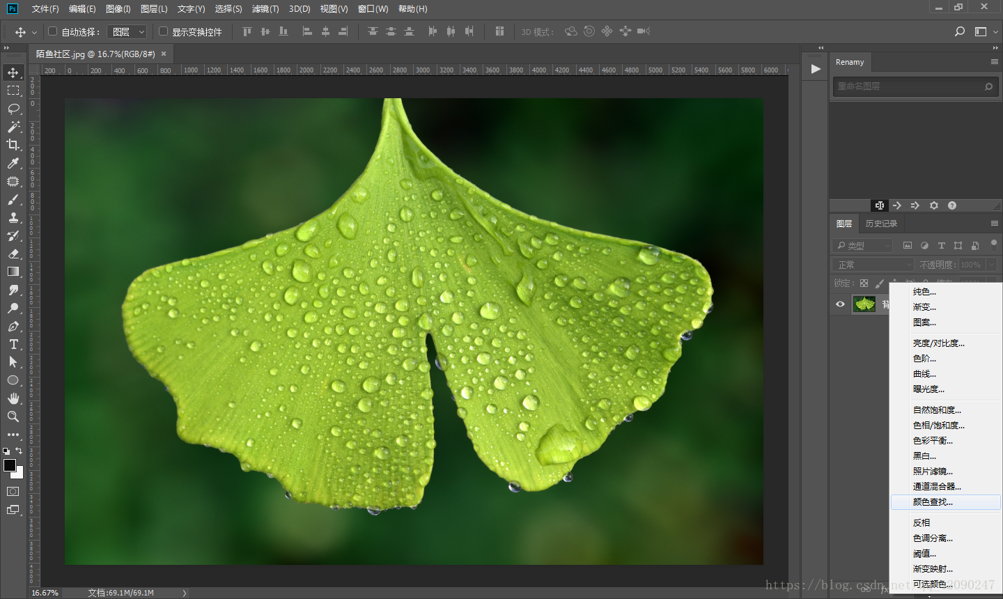 5、在圖層面板左邊第四個(gè)點(diǎn)擊找到“顏色查找”。