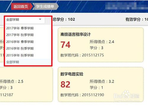 大家進(jìn)去的時候是默認(rèn)提供全部學(xué)期的成績,大家點到這里就可以切換學(xué)期查看了。