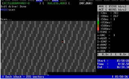 輸入MHDD回車確認,這個mhdd不區(qū)別大小寫。即可進入MHDD掃描工具的使用。