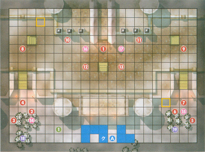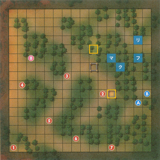 敵方配置(本攻略配置為基于H難度,下面有N,H,L配置不同的解說,數(shù)字代表地圖上的標(biāo)記藍(lán)色為我方紅色為地方,下文以后不再贅述)