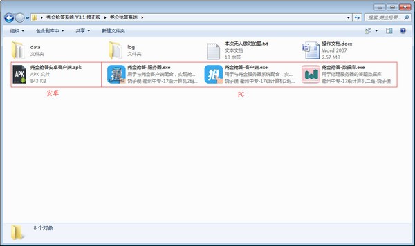 本軟件用于小眾范圍內(nèi)的搶答和抽獎(jiǎng)!內(nèi)部包含了四個(gè)應(yīng)用程序!和一個(gè)操作文檔!