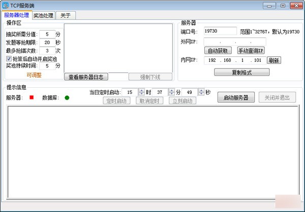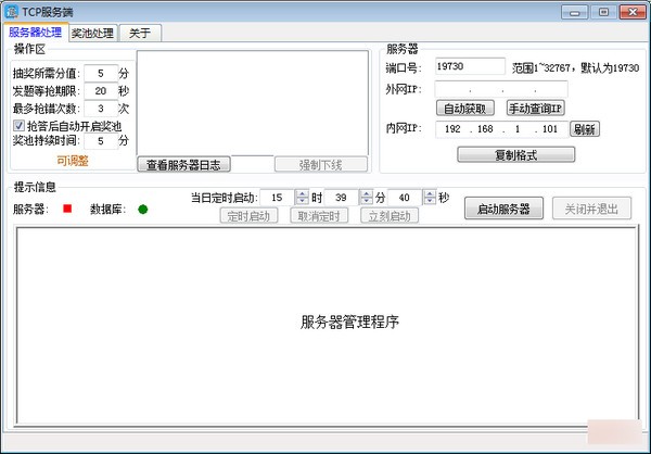 大家可以在服務(wù)器中設(shè)置抽獎(jiǎng)的獎(jiǎng)項(xiàng),和獎(jiǎng)項(xiàng)的概率!詳細(xì)信息可以看文件內(nèi)的“操作文檔.docx”!