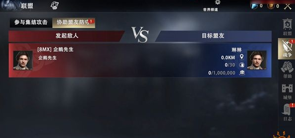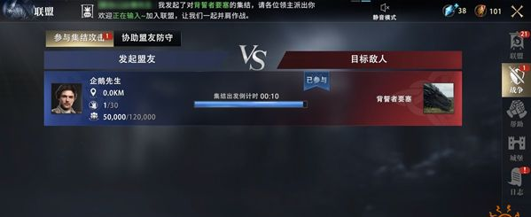 響應(yīng)時(shí)間結(jié)束之前,盟友均可通過(guò)戰(zhàn)爭(zhēng)大廳中的集結(jié)攻擊,查看盟友攻擊的目標(biāo),響應(yīng)盟友號(hào)召參與戰(zhàn)斗。
